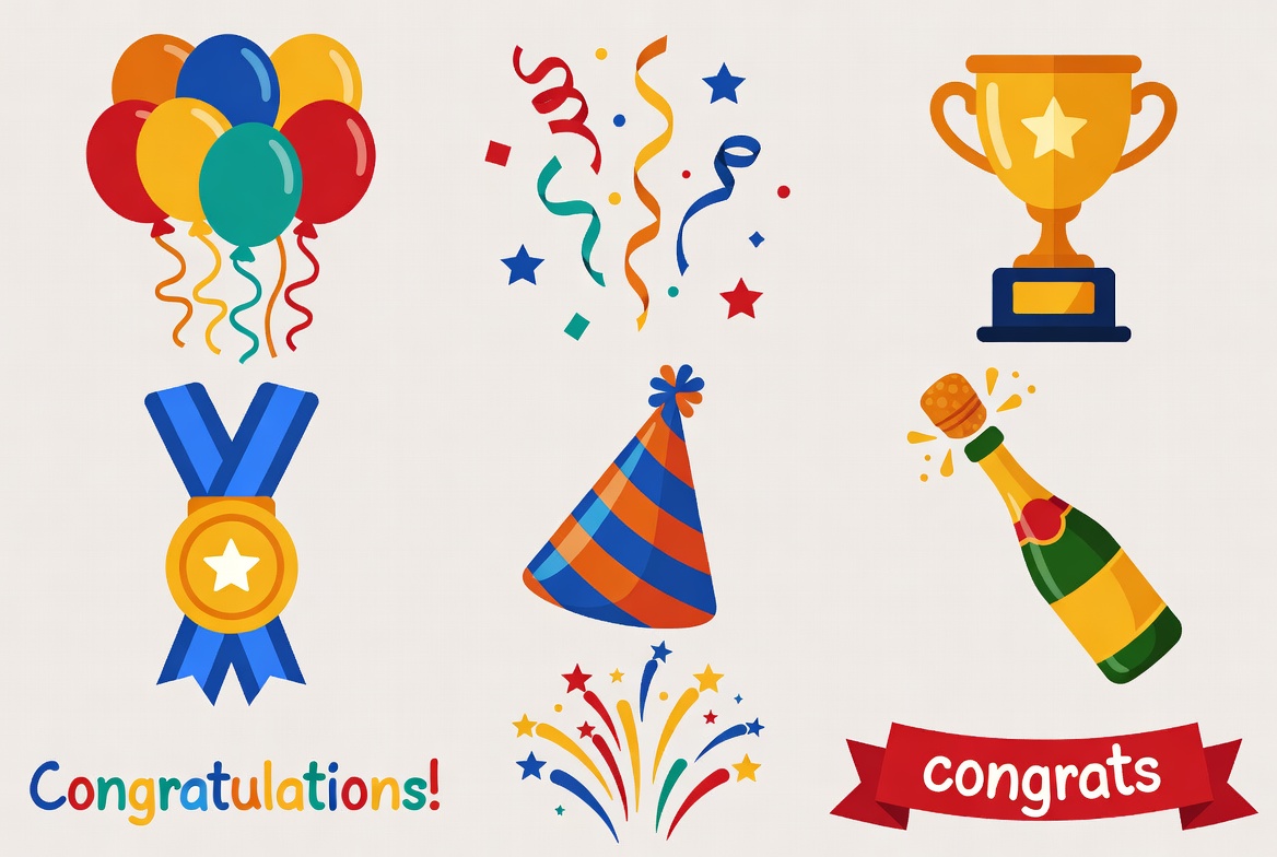 Colorful Congratulations Clipart Icons