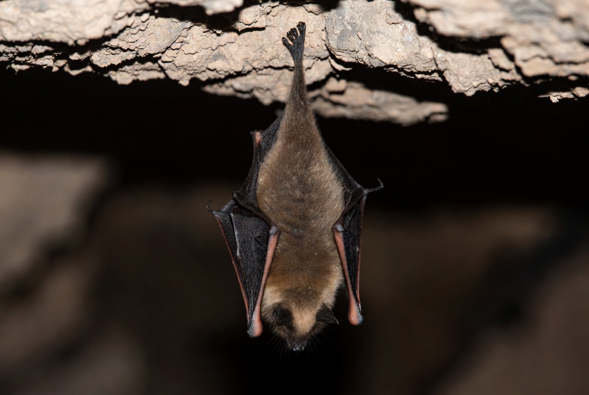 animal, brown bat, cave, claws, fur, hanging bat, isolated background, mammal, nocturnal, rock ceiling, upside down, wildlife, wings, bat