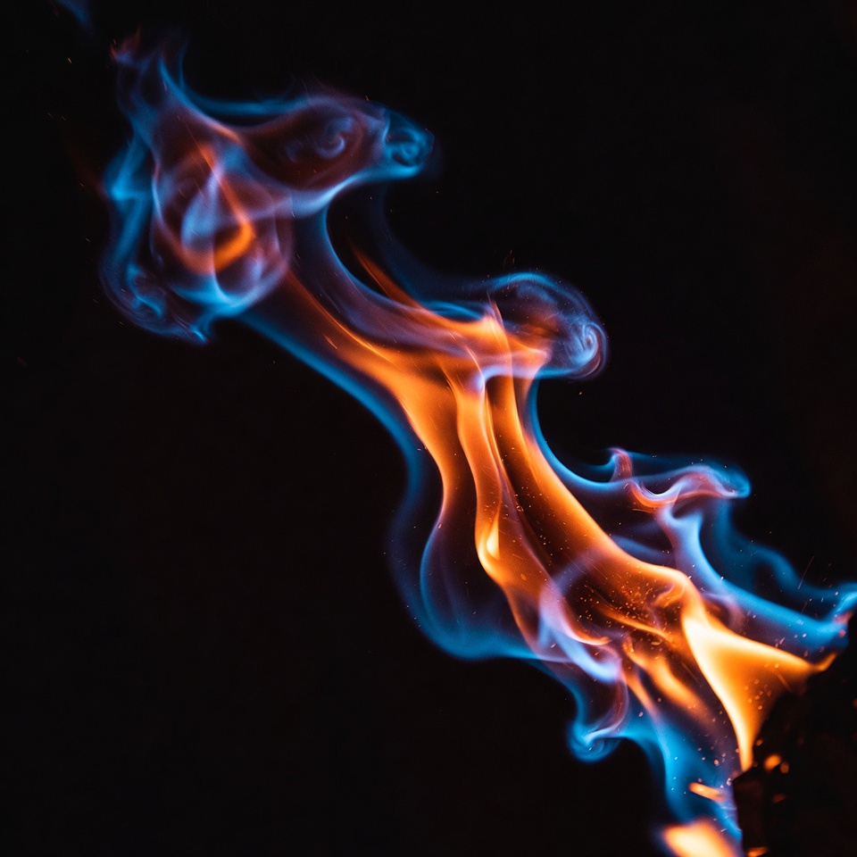 Blue and orange flames on black