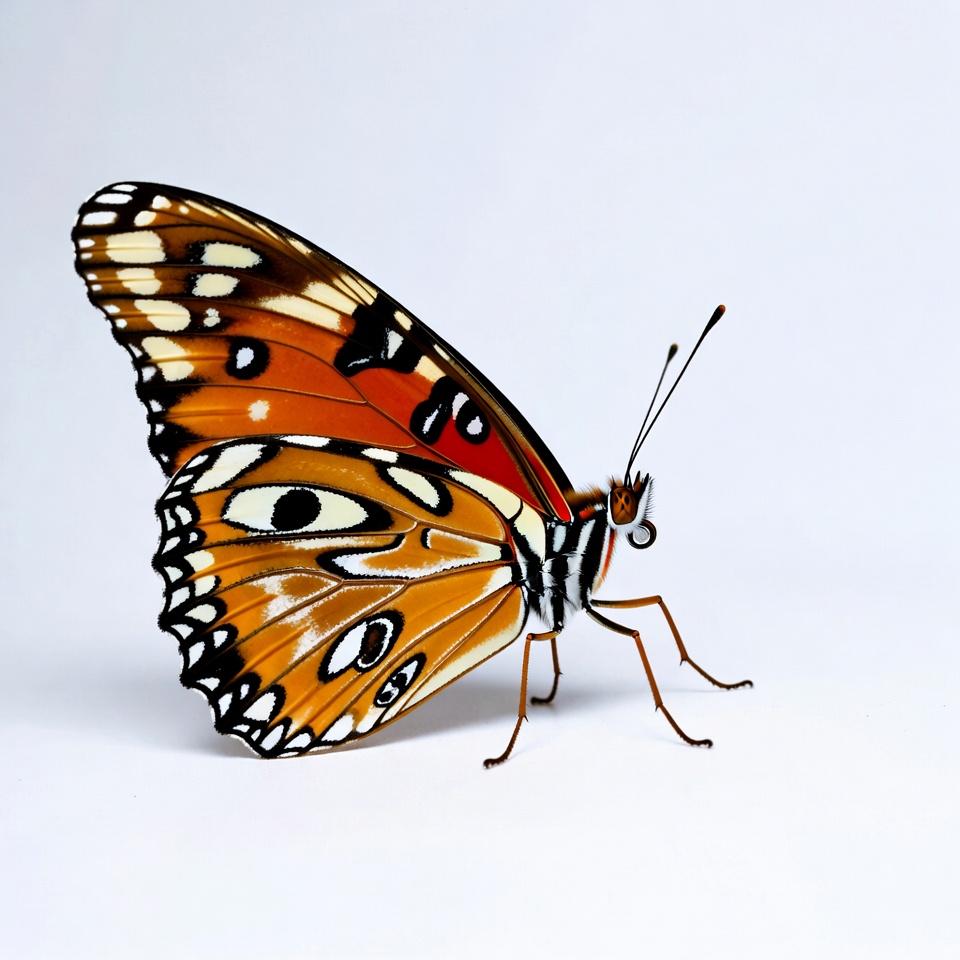animal, black borders, detailed wings, eye spots, insect, isolated background, macro, monarch-like, nature, orange butterfly, white spots, wildlife, wings, butterfly