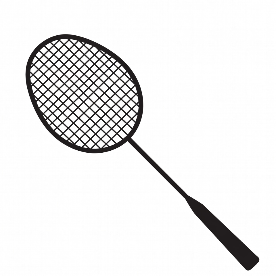 badminton, black, clipart, game, handle, illustration, isolated, line art, netted racket, oval head, racket, racket outline, shuttlecock racket, sports, sports equipment, vector, white background, badminton racket