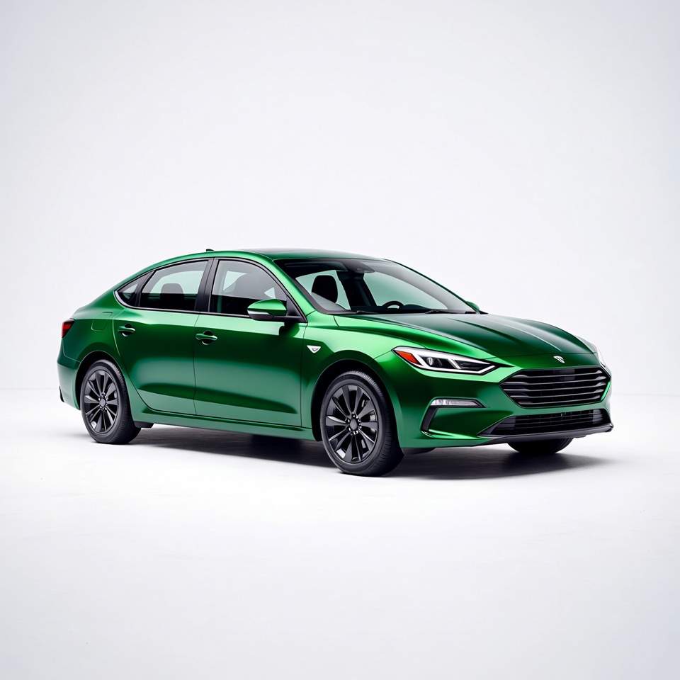 Green Hyundai Sedan on White Background