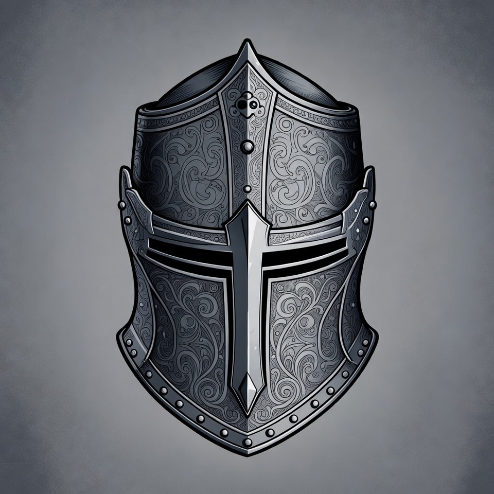 armor helmet, clipart, cross helmet, crusader helmet, engraved helmet, fantasy armor, filigree design, illustration, isolated background, medieval helmet, metal helmet, ornate helmet, silver helmet, warrior helmet, knight helmet