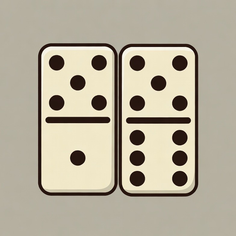 Two white domino tiles with black dots are standing upright side by side on a light gray background. The left tile shows a 4-1 configuration, while the right tile displays a 5-2 pattern. The image is a simple flat illustration with bold outlines.