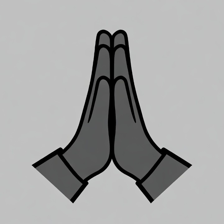 black outline, clipart, emoji, gray background, hands, icon, illustration, isolated background, line art, meditation, namaste, prayer gesture, religion, worship, praying hands
