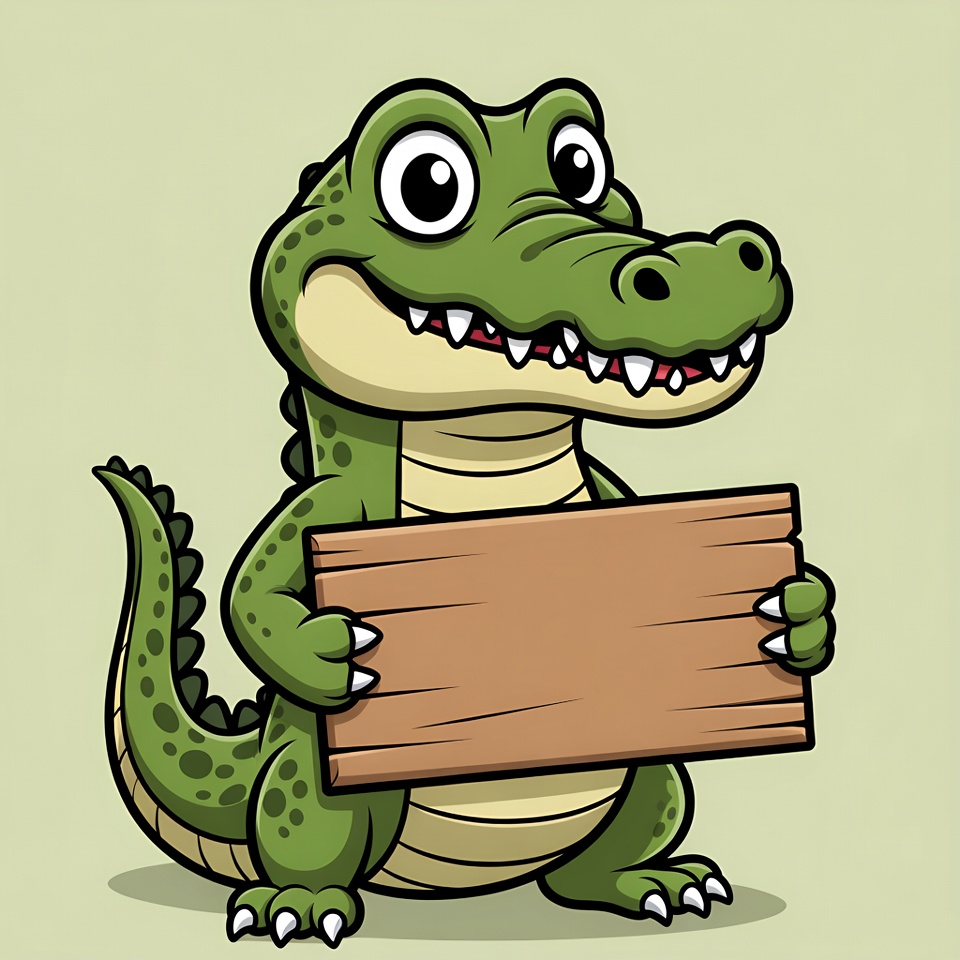 Cartoon crocodile holding blank sign