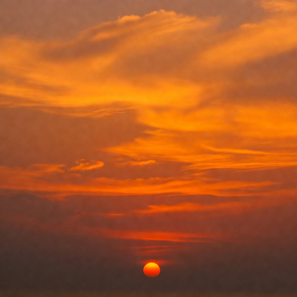Vibrant orange sunset over horizon