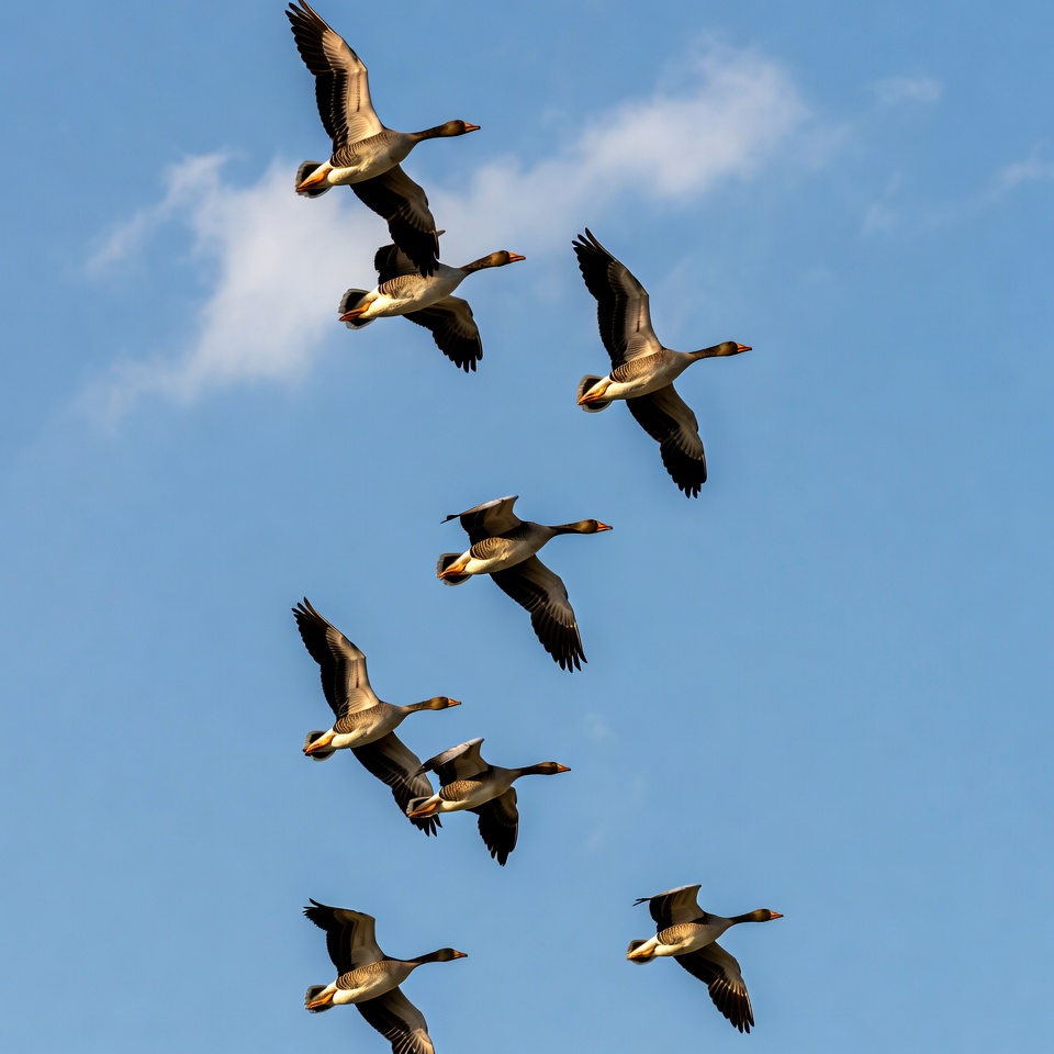 Flock of Canada Geese Flying
