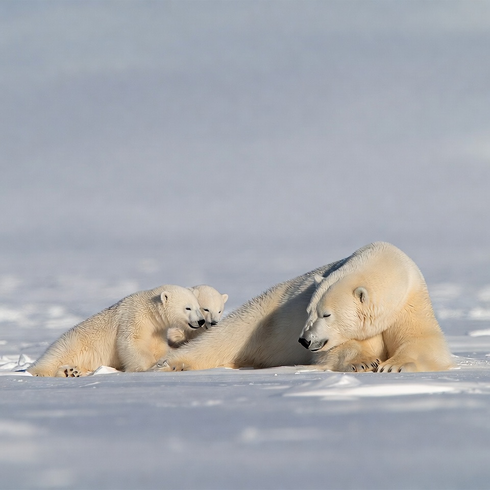 Arctic, animals, bear cubs, bear family, cubs, family, ice, lying down, mother bear, nature, playing, polar bears, snow, snowy ground, white fur, wild animals, wildlife, polar bear
