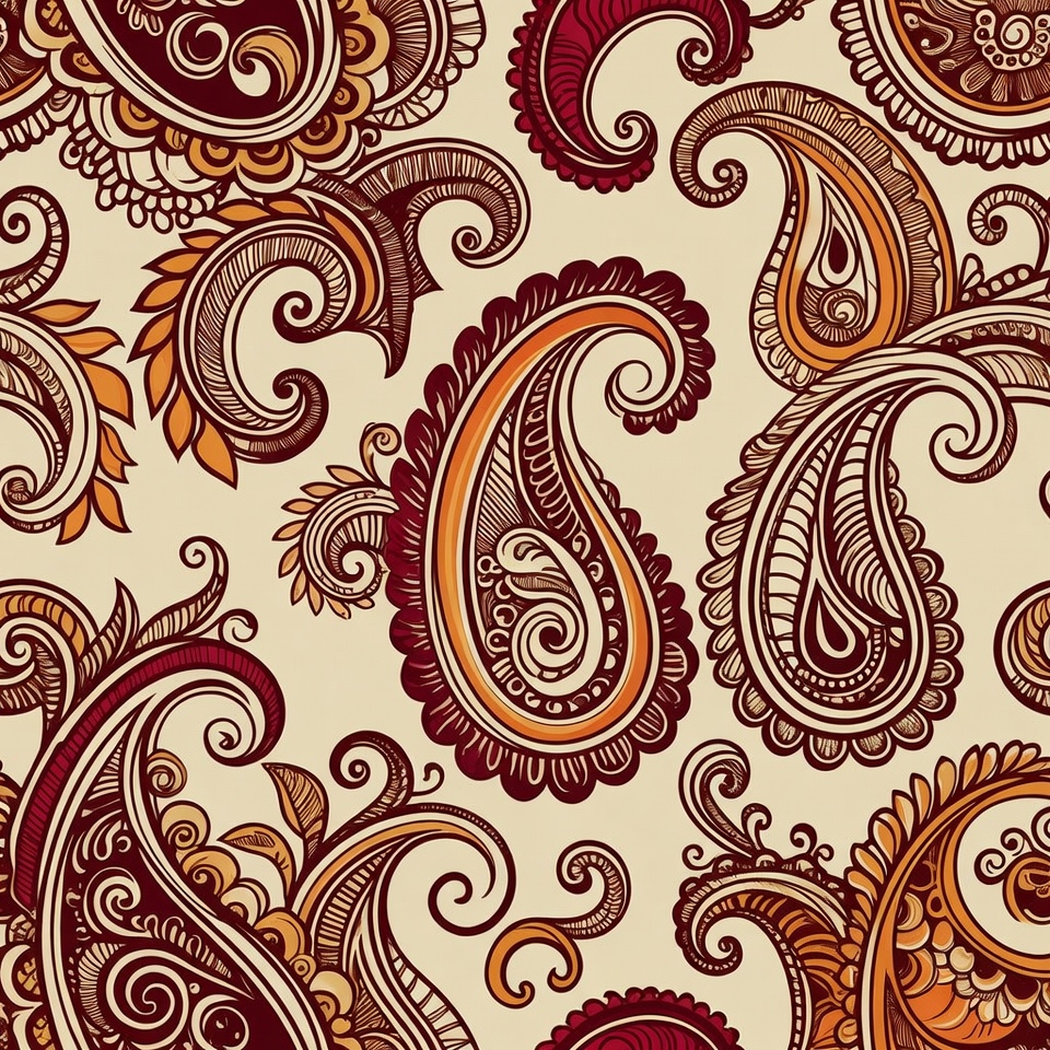 background, brown paisley, clipart, decorative, floral pattern, henna design, illustration, indian pattern, isolated background, maroon paisley, mehndi pattern, orange paisley, ornate, paisley, seamless pattern, swirling motifs, texture, vector pattern, vine design, paisley pattern