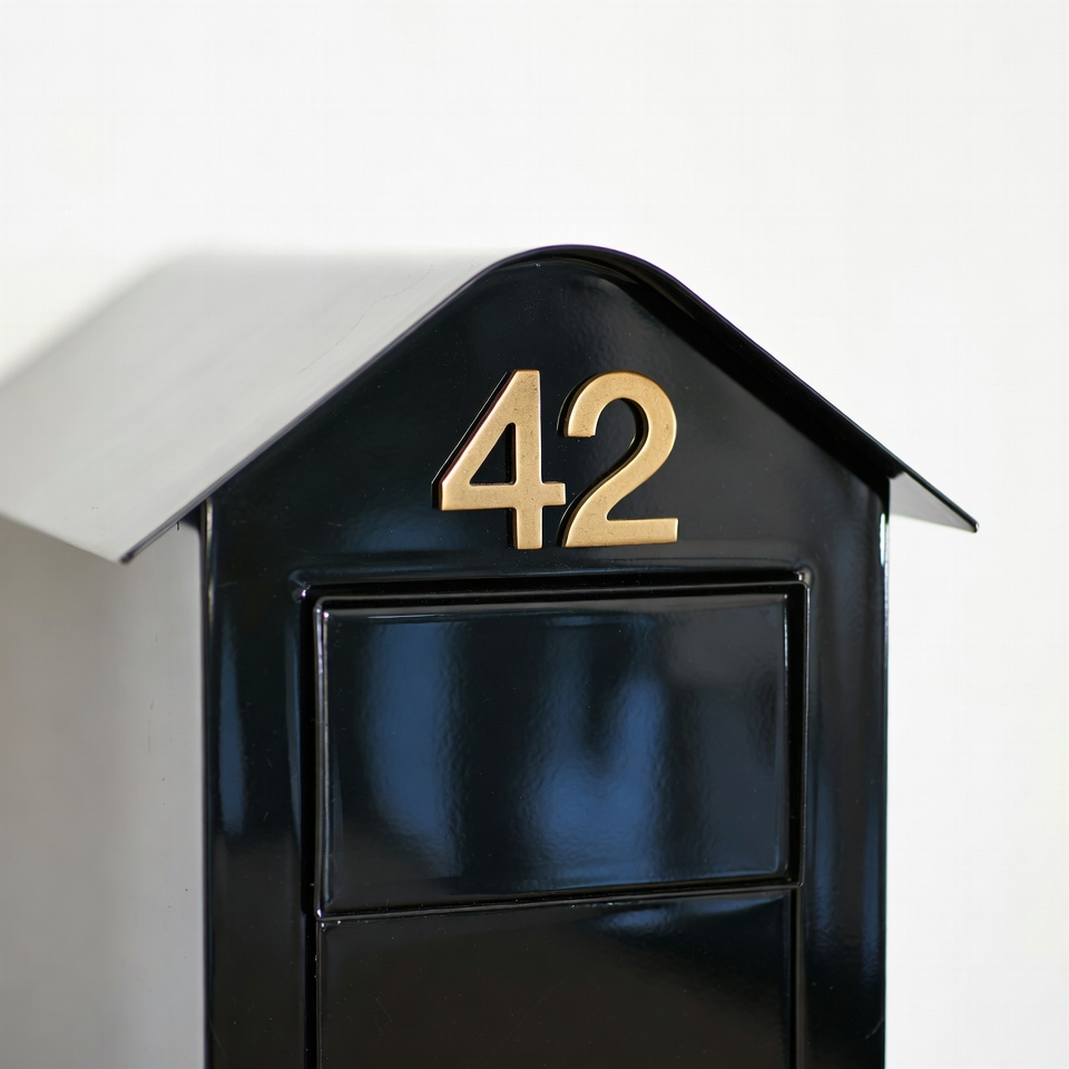 42 mailbox, address number, black mailbox, gold 42, gold numbers, house mailbox, isolated background, metal mailbox, number 42, postal box, mailbox
