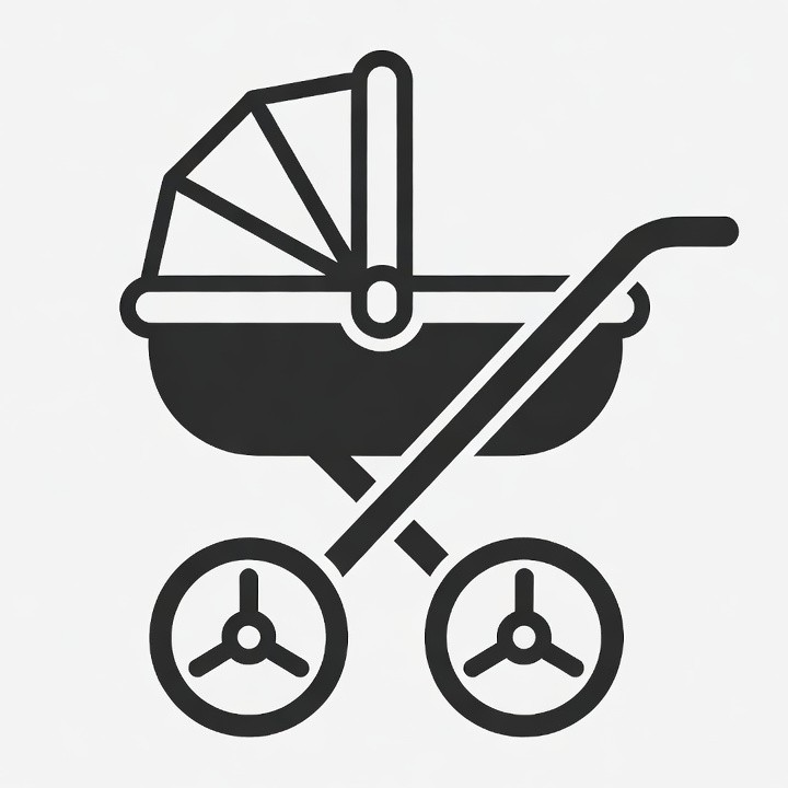 baby carriage, black white, buggy, canopy, clipart, graphic, handle, icon, illustration, infant, isolated background, line art, outline, pram, pushchair, simple, stroller, vector, wheels, baby stroller