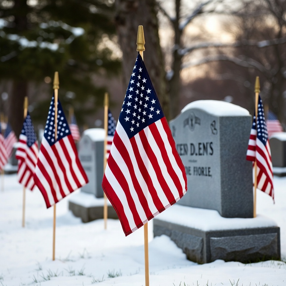 American Flags on Snowy Graves