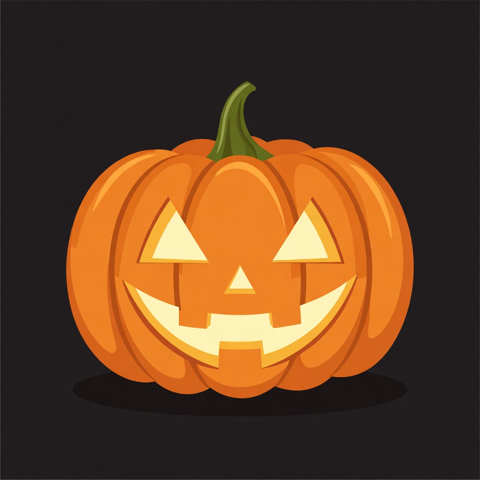 Halloween, black background, carved pumpkin, clipart, glowing eyes, green stem, illustration, isolated background, jackolantern, orange pumpkin, pumpkin, smiling face, spooky pumpkin, vector art, jack-o-lantern