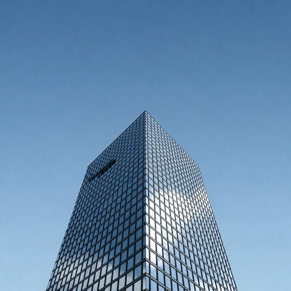 architecture, blue sky, city building, clear sky, downtown, glass building, glass facade, grid pattern, high-rise, modern architecture, reflective windows, tall building, tower, urban structure, skyscraper