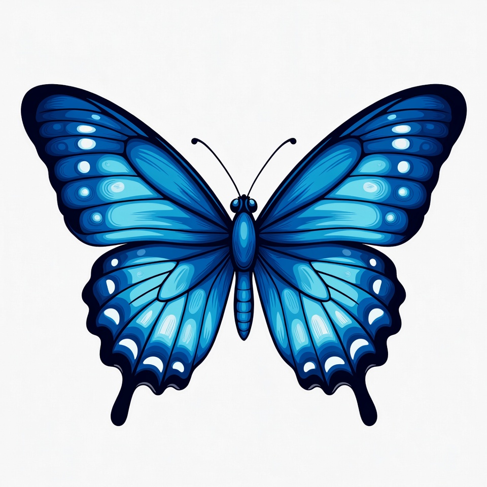 animal, butterfly, clipart, detailed, illustration, insect, isolated background, nature, vector art, vibrant, white spots, wings, blue butterfly