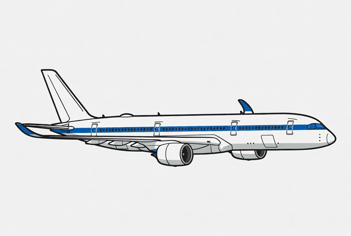White Airplane with Blue Stripes Illustration
