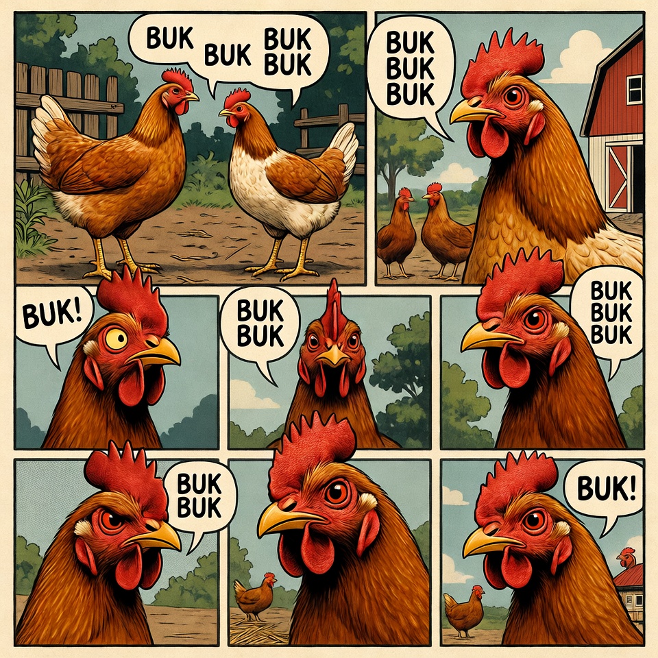 Cartoon Chickens Clucking in Comic Strips