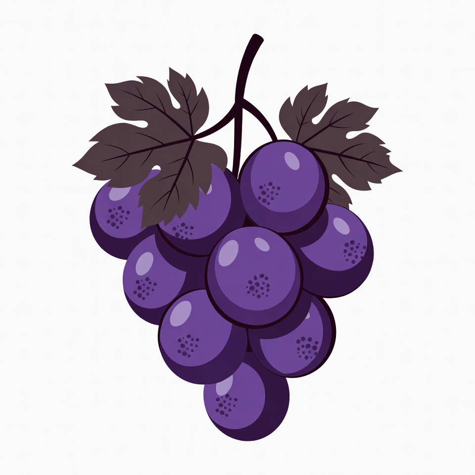 cartoon grapes, clipart, fruit, grape bunch, grape cluster, grapevine, green stem, illustration, isolated background, purple grapes, ripe grapes, vine leaves, grapes