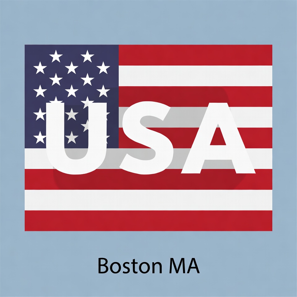 American flag, Boston MA, Massachusetts, USA text, clipart, flag illustration, flat design, isolated background, patriotic, stars and stripes, vector graphic, USA flag