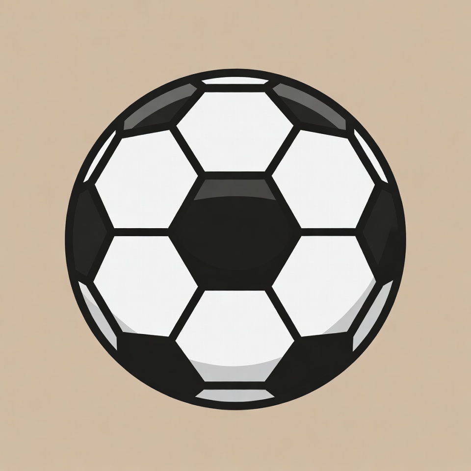A classic black and white soccer ball with hexagonal panels is centered on a beige background. The ball features alternating black pentagons and white hexagons in a traditional design. It appears as a simple vector illustration.