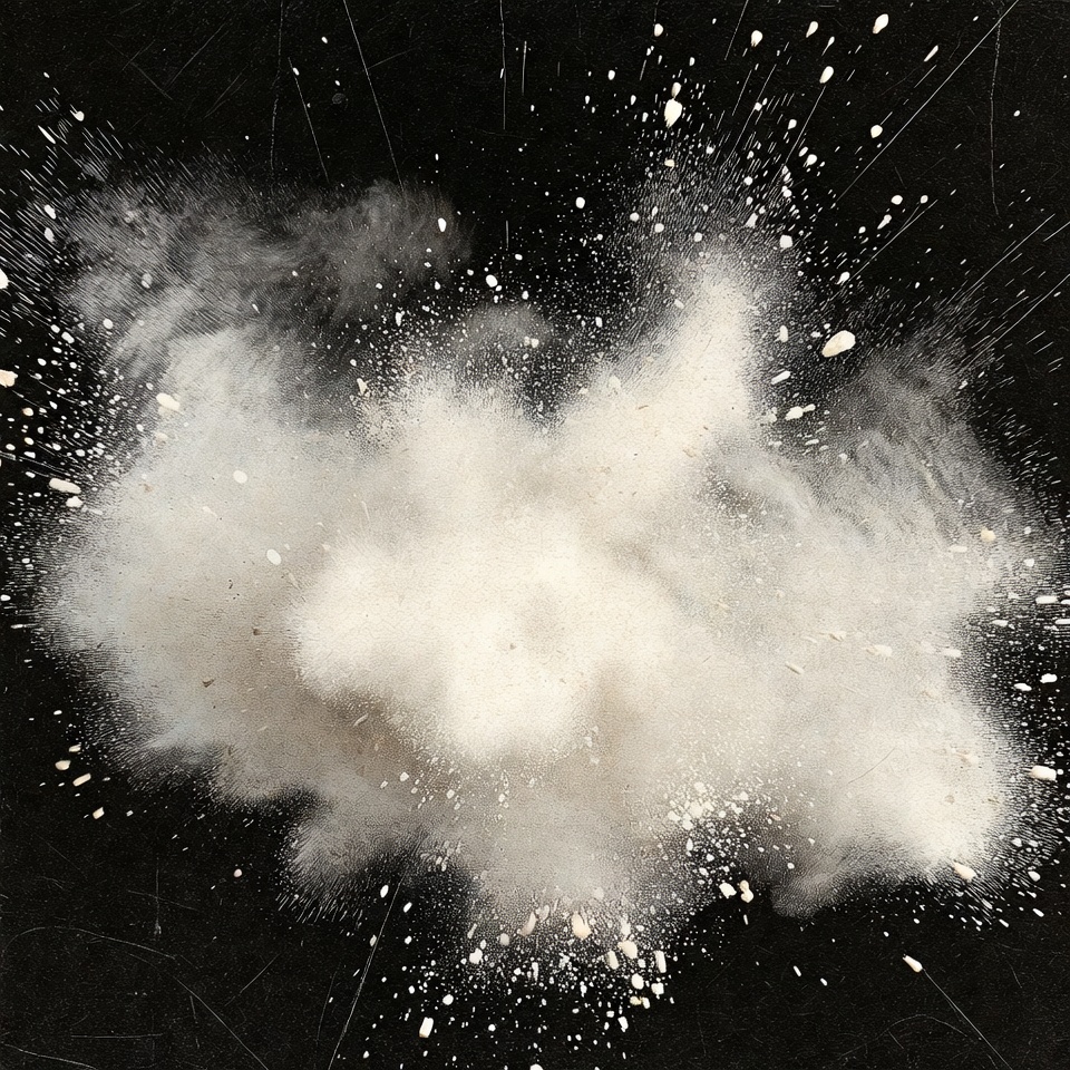 black background, burst, dust cloud, dust explosion, dynamic burst, explosion, fine particles, isolated background, motion blur, particles, powder burst, powder cloud, powder explosion, scatter, smoke effect, white dust, white powder