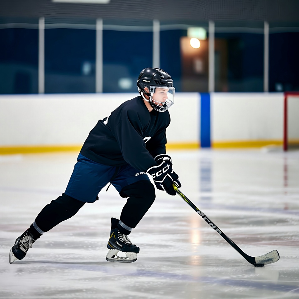 Hockey player skating with puck