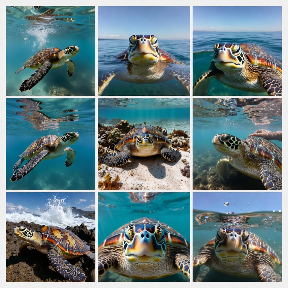 Sea Turtles Swimming Underwater Collage