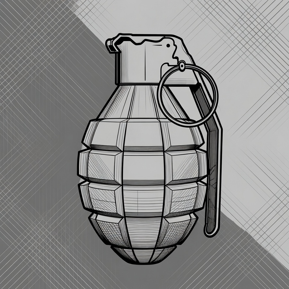 clipart, explosive, gray background, hand grenade, illustration, isolated background, line art, military, outline drawing, pin ring, safety lever, tactical gear, vector art, weapon, grenade