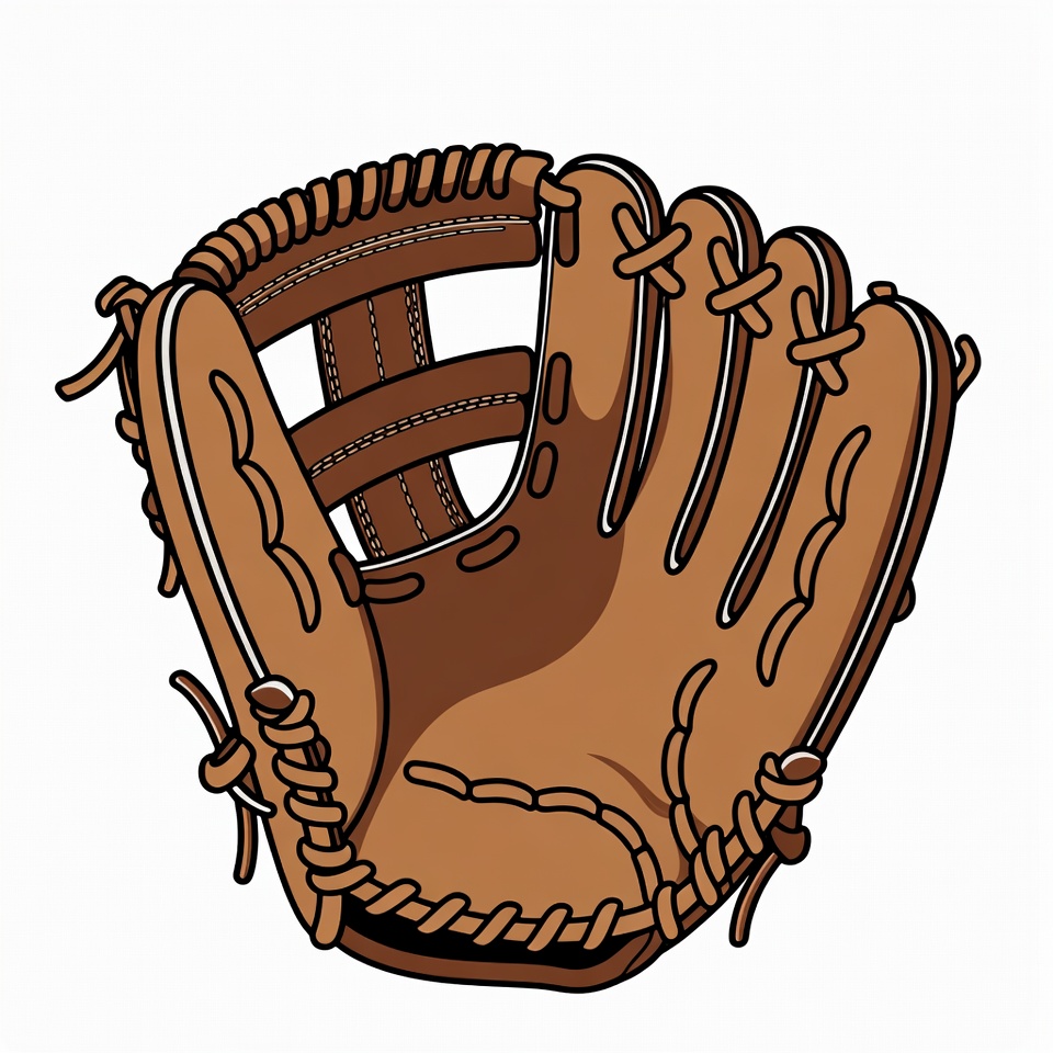 baseball gear, baseball mitt, brown glove, catcher's glove, catcher's mitt, clipart, isolated background, laces, leather glove, mitt illustration, padded glove, sports equipment, stitching, vintage style, webbing, white background, baseball glove