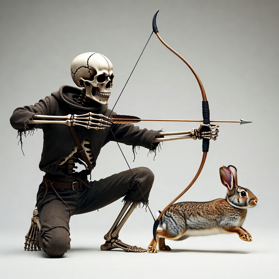 Skeleton archer aiming with bunny