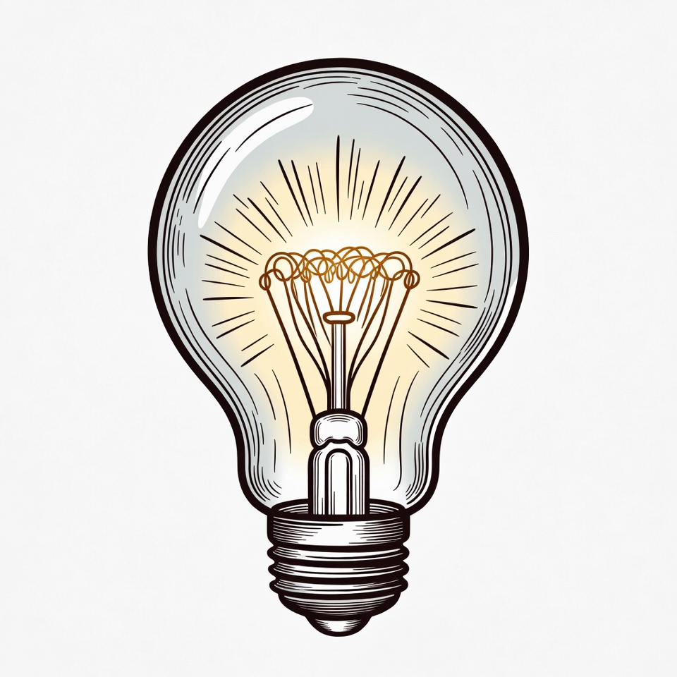 bright light, bulb glowing, clipart, energy, filament, glowing bulb, hand drawn, idea symbol, illustration, incandescent bulb, invention, isolated, light rays, line art, screw base, sketch, vintage bulb, white background, light bulb