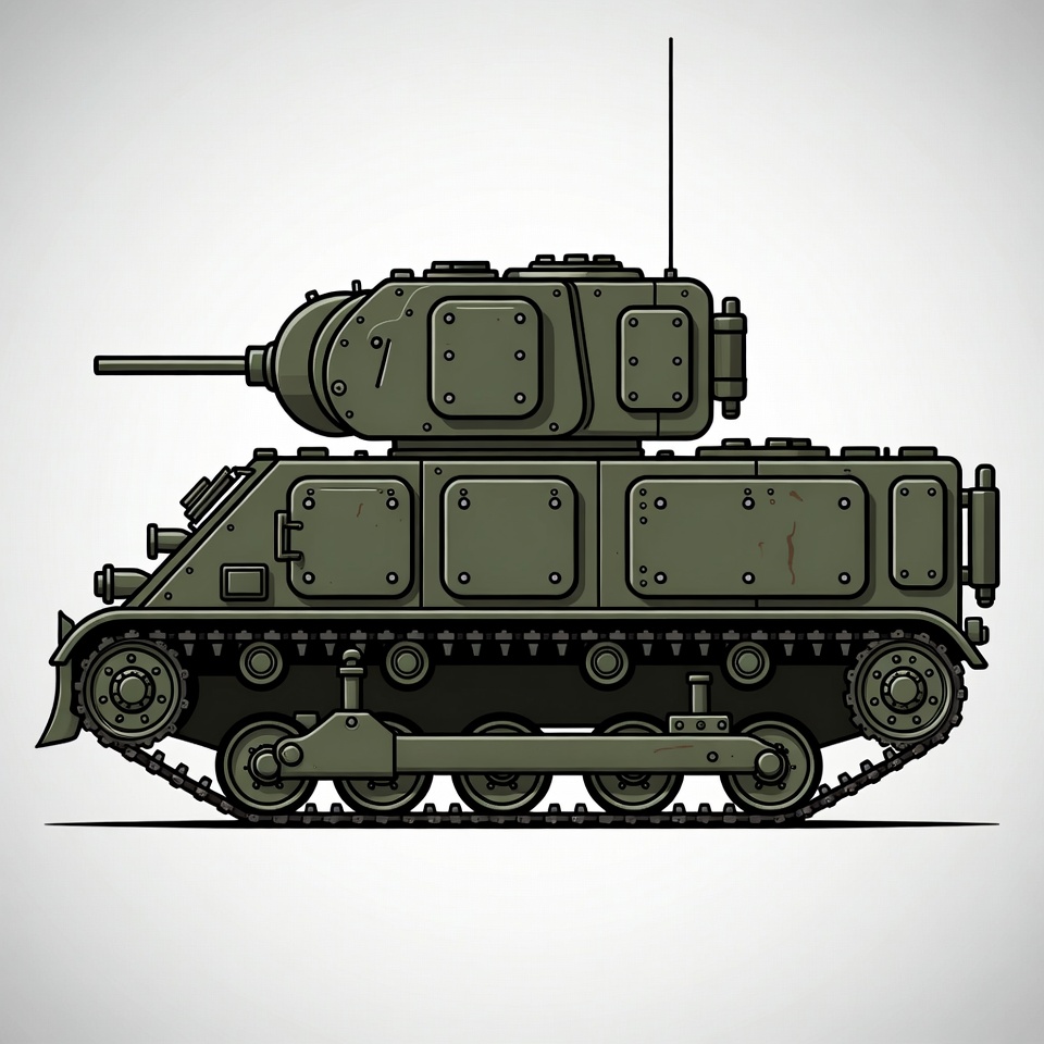 Stuart tank, WW2 tank, antenna, armored vehicle, cannon, clipart, green tank, isolated background, light tank, line art, military tank, side view, tank illustration, tank tracks, tank turret, vector illustration, war machine, M3 Stuart