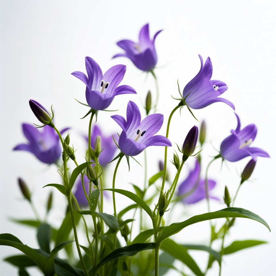 Purple Bellflowers on White Background