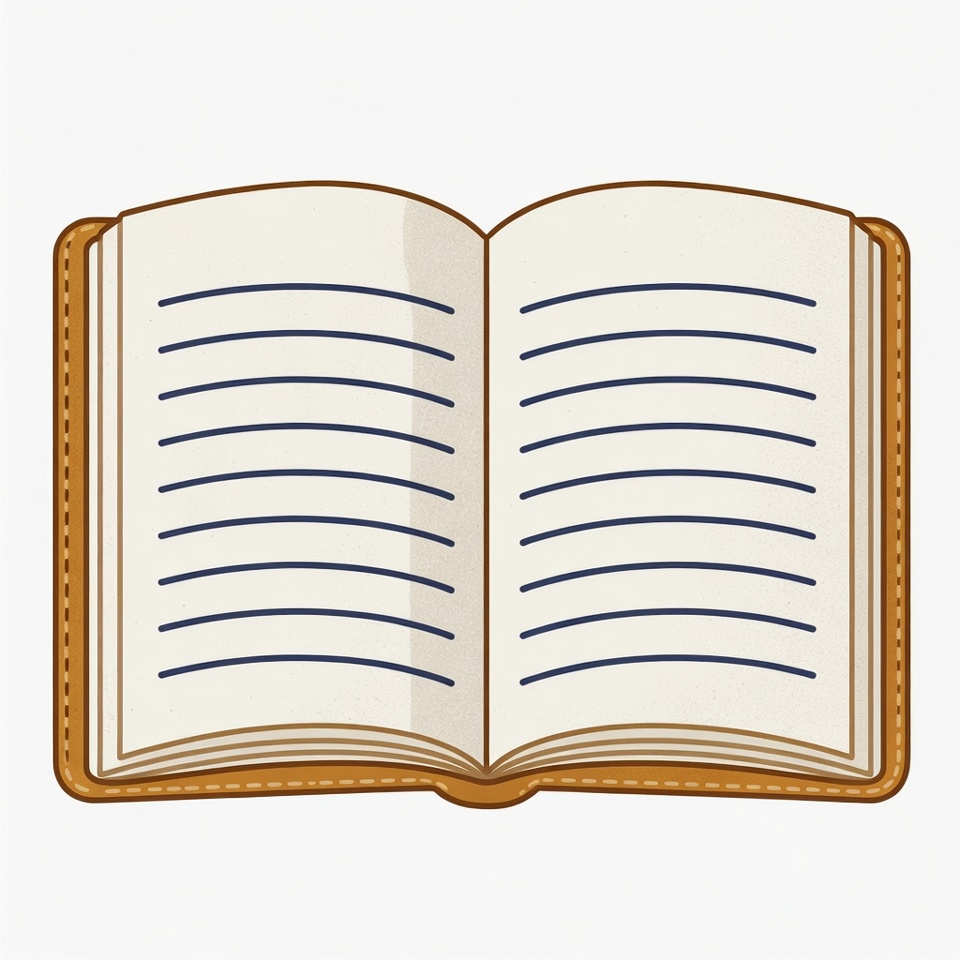 blank pages, blue lines, book pages, clipart, cream paper, illustration, isolated background, leather cover, lined pages, notebook, open notebook, simple drawing, tan leather, vector art, open book