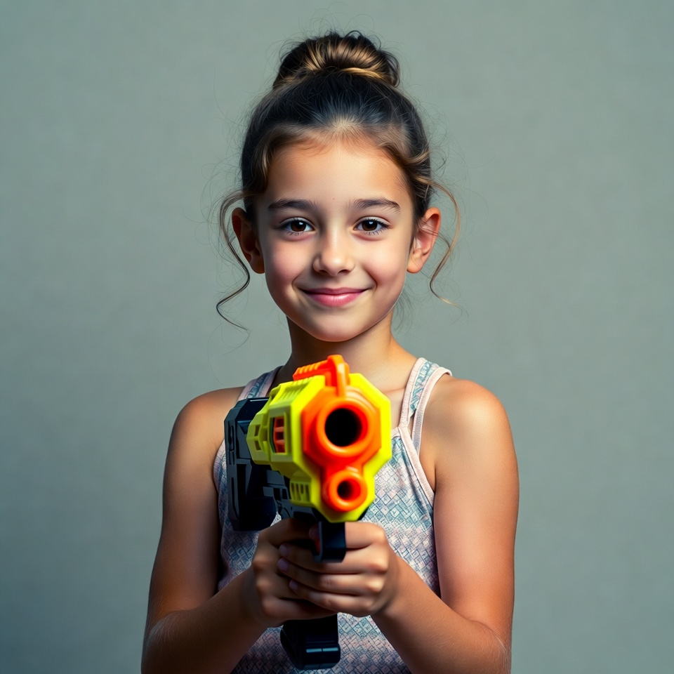 Girl holding yellow toy gun