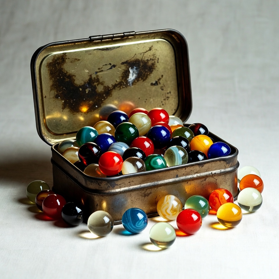 Colorful Marbles in Open Tin Box