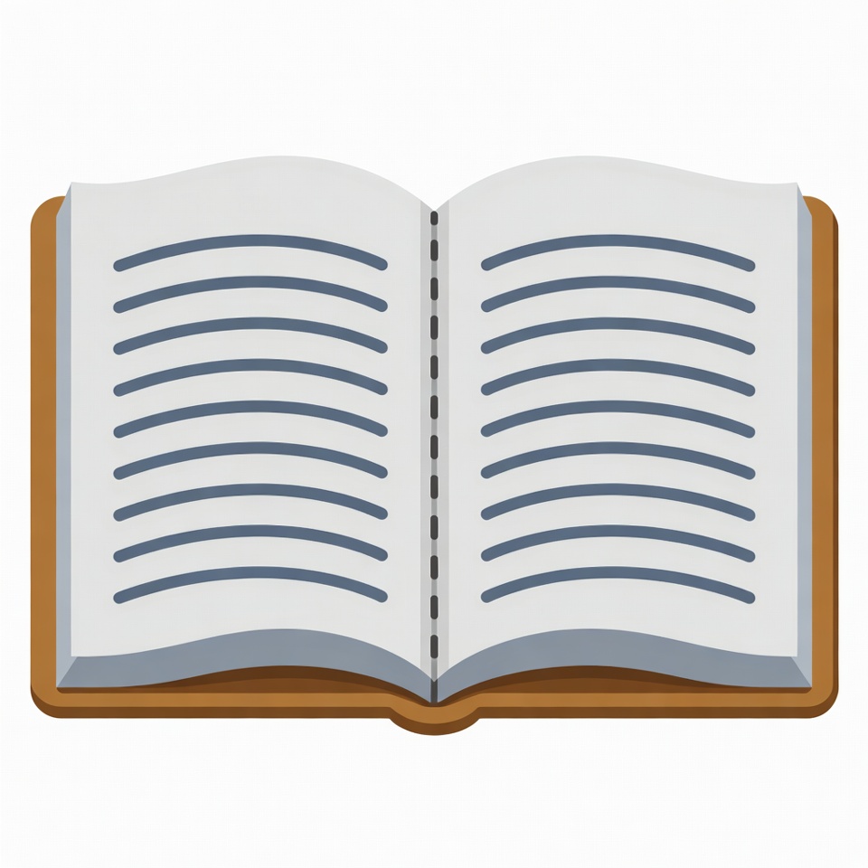 book, brown cover, clipart, education, flat design, illustration, isolated background, literature, pages, reading, storybook, text lines, textbook, white pages, open book