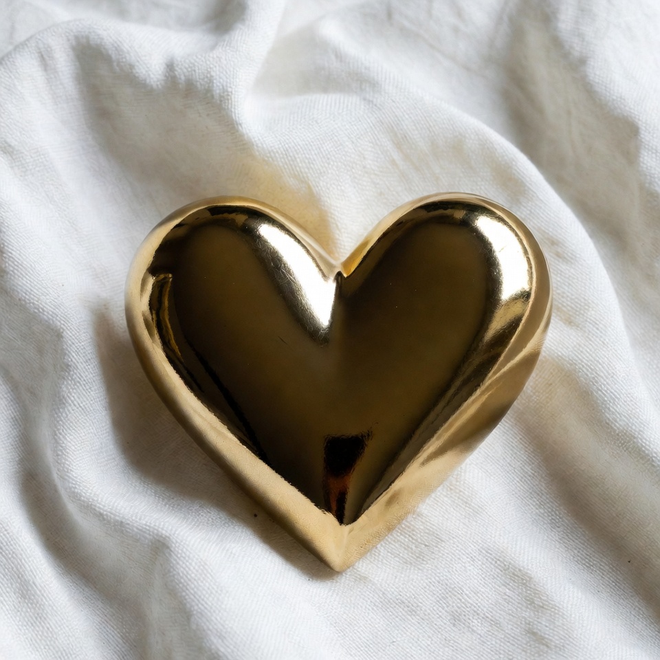 gold object, heart decoration, heart shape, isolated background, luxury heart, metallic gold, reflective surface, shiny heart, textured fabric, valentine heart, white fabric, gold heart
