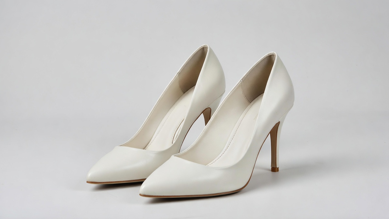 bridal shoes, designer heels, elegant shoes, fashion shoes, formal shoes, glossy shoes, heel shoes, high heels, isolated background, leather heels, luxury footwear, pair of shoes, pointed toe, pumps, stiletto heels, stilettos, wedding heels, white pumps, women's shoes, white heels