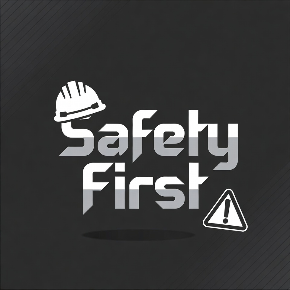 black background, clipart, construction safety, danger sign, exclamation mark, hard hat, helmet, illustration, isolated background, safety icon, silver text, vector graphic, warning triangle, white icon, safety first