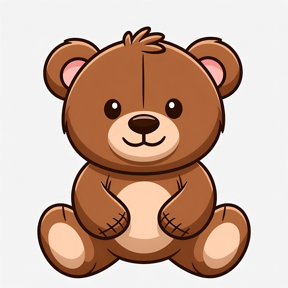 adorable bear, baby toy, big eyes, brown bear, cartoon bear, clipart, cute bear, illustration, isolated background, kawaii bear, plush toy, sitting bear, smiling bear, vector art, teddy bear
