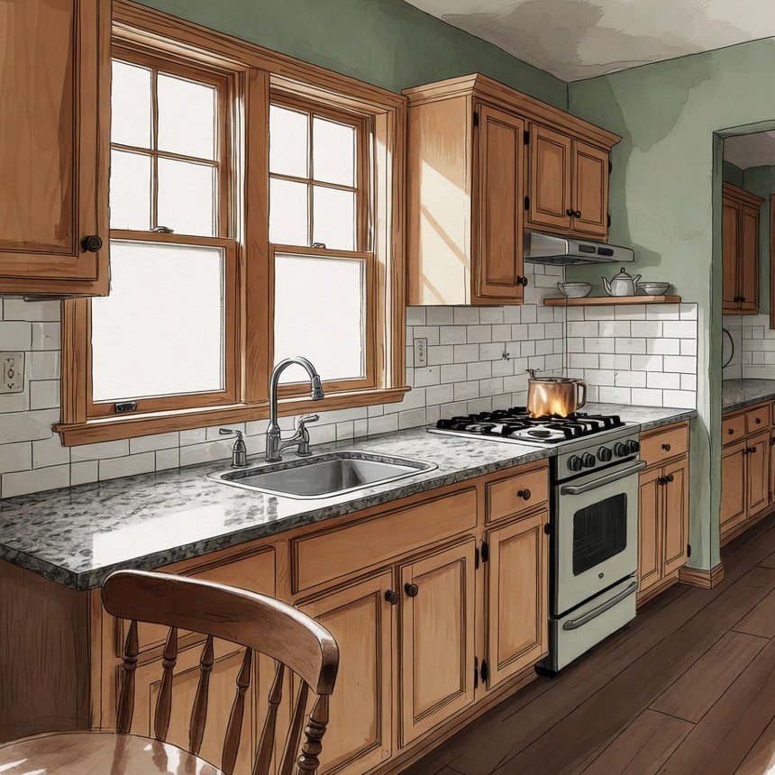Cozy Kitchen with Wooden Cabinets