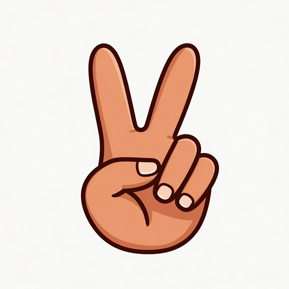 V sign, cartoon hand, clipart, emoji style, fingers, hand gesture, illustration, isolated background, nails, orange hand, simple drawing, vector graphic, victory sign, peace sign