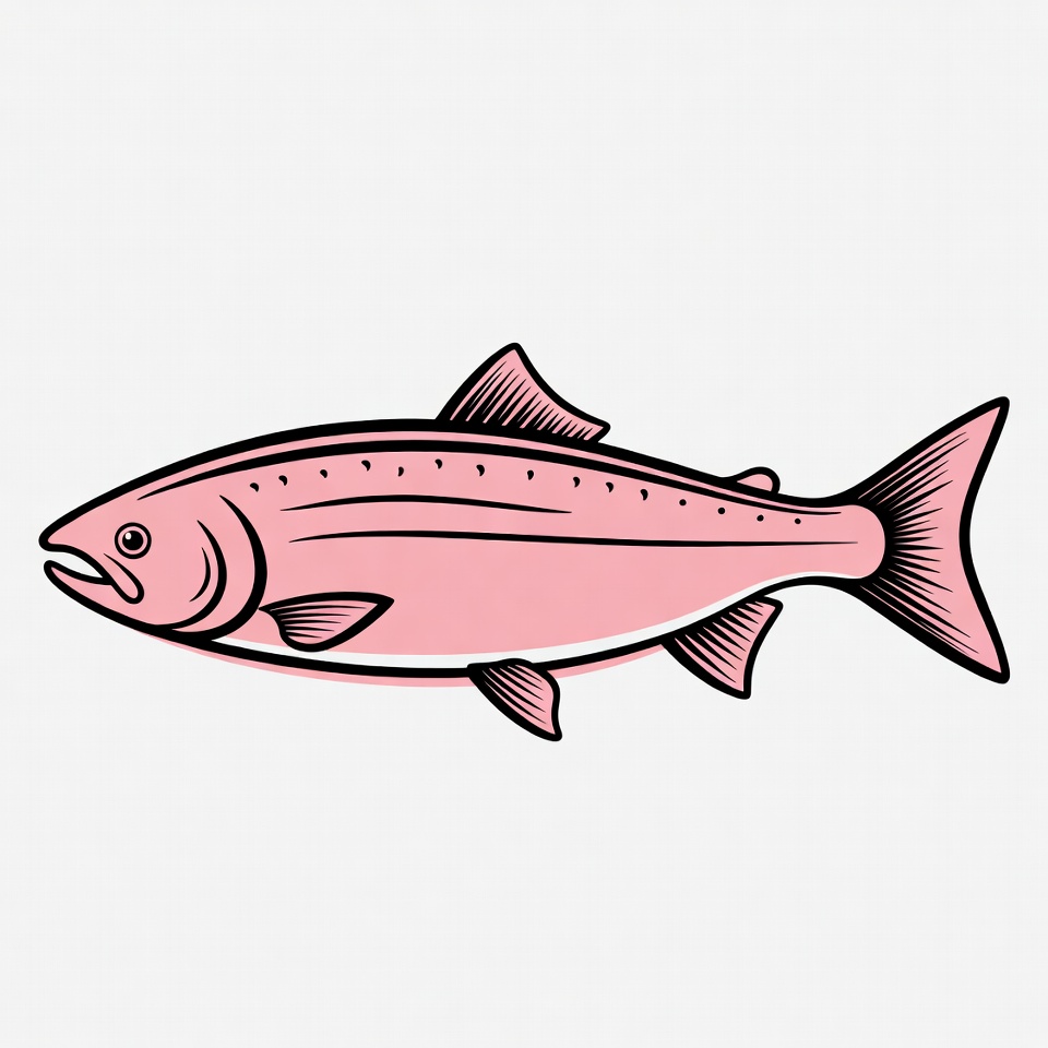 clipart, drawing, fins, fish, fish illustration, graphic, isolated background, ocean fish, pink fish, salmon, salmon fish, scales, sea animal, side view, vector art, pink salmon