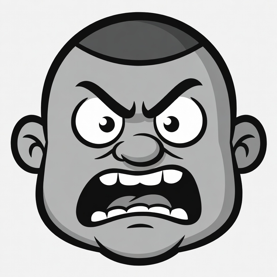 African-American, aggressive, cartoon, clipart, emoji style, furious, glaring eyes, illustration, isolated background, mad expression, male, man, rage, short hair, shouting, snarling mouth, teeth, vector art, yelling, angry face