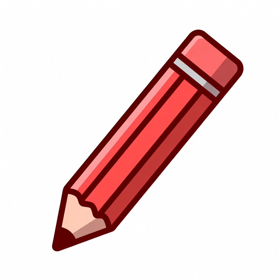 cartoon pencil, clipart, drawing tool, eraser, graphite tip, illustration, isolated background, office supply, red pencil, school supply, simple icon, vector art, pencil