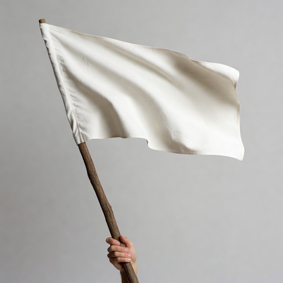 blank flag, empty flag, flag pole, gray background, hand holding, holding flag, isolated background, plain flag, waving flag, white fabric, wooden pole, white flag