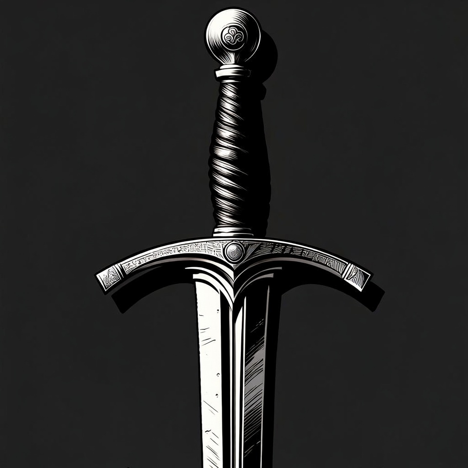 black background, blade, crossguard, dark background, engraving, fantasy sword, hilt, illustration, isolated, knight sword, line art, longsword, medieval sword, ornate sword, pommel, steel sword, weapon, sword