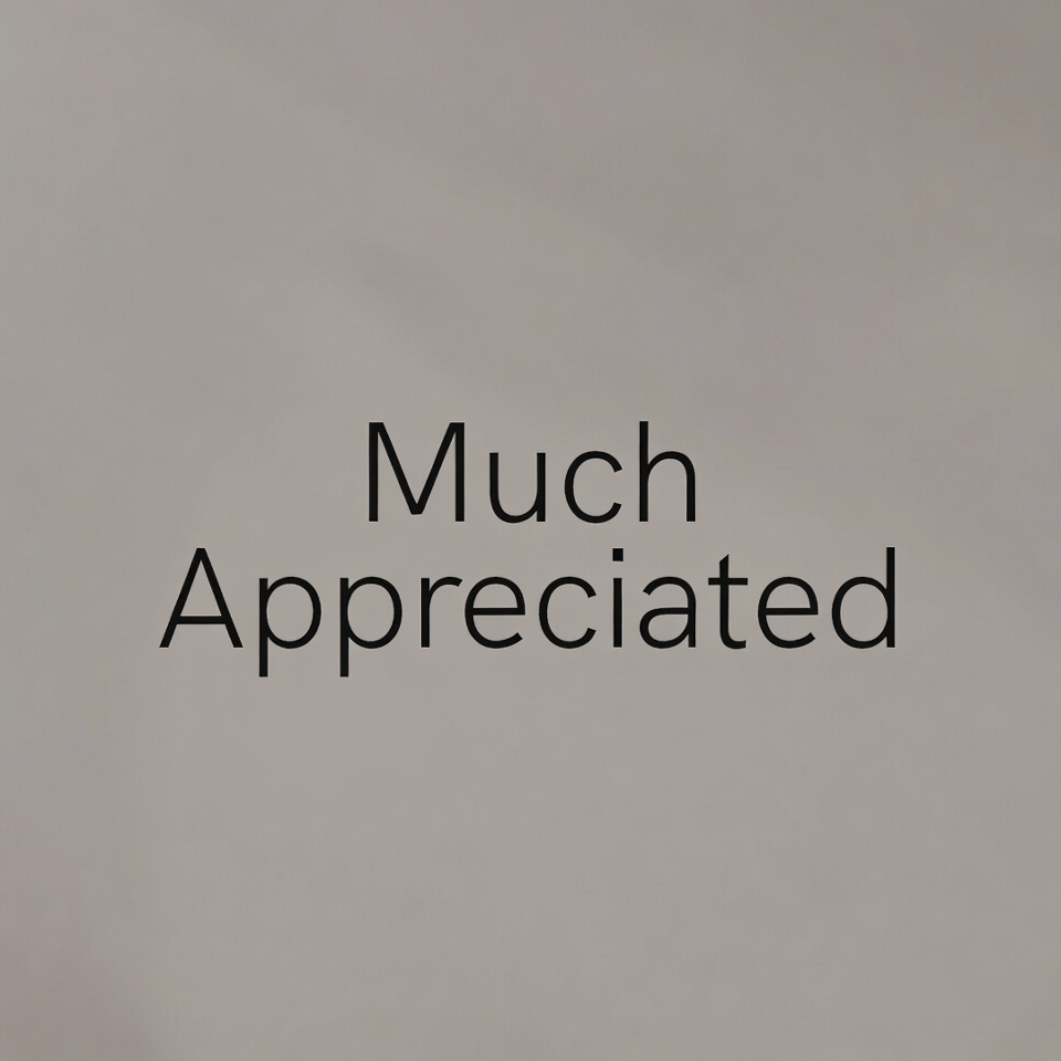 appreciation, bold letters, graphic, gray background, isolated background, message, phrase, sign, text, thank you, typography, much appreciated